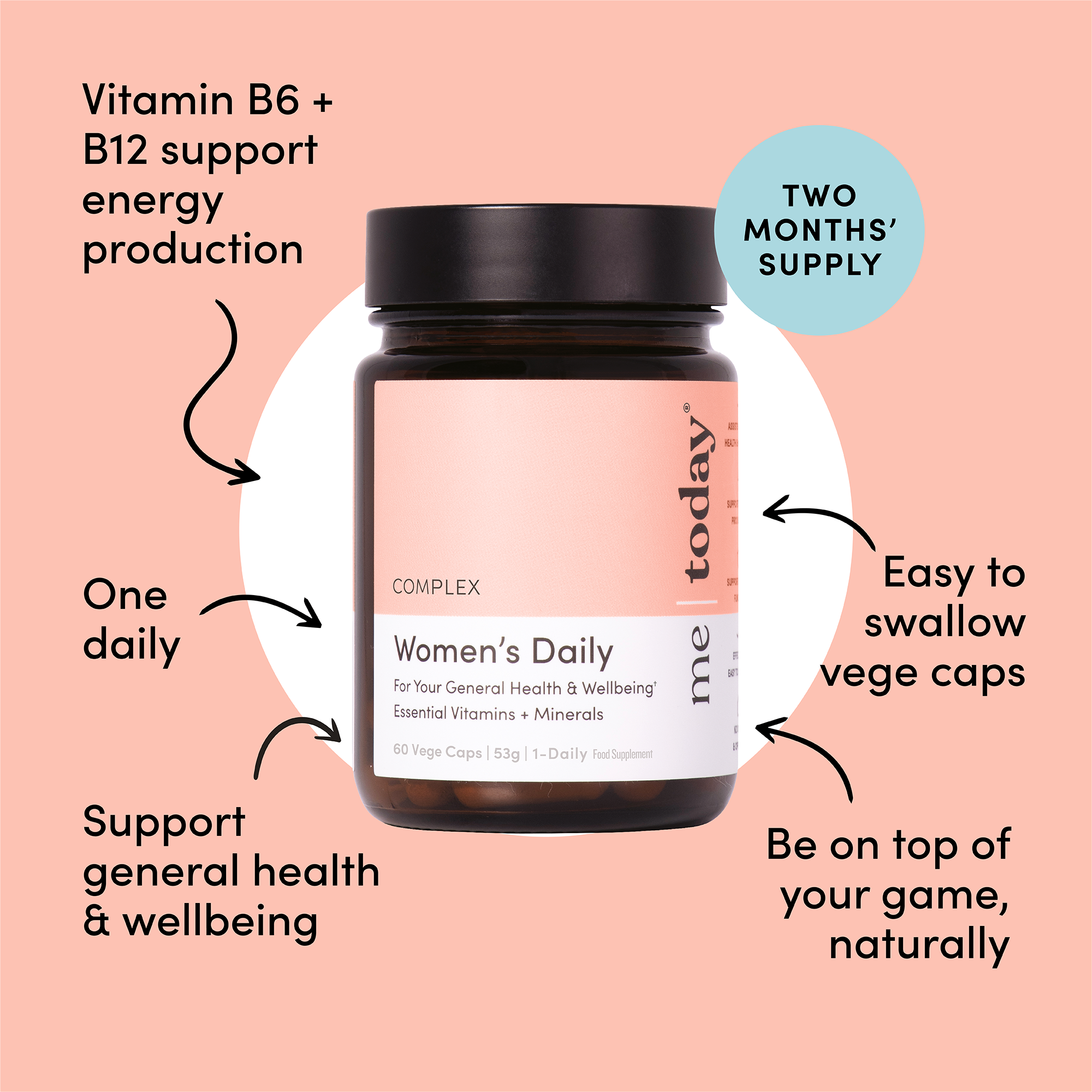 Me Today’s single dose Women’s Daily Multivitamins are easy to swallow vegetarian capsules containing 27 vitamins, minerals & herbs including vitamin B6 and B12 to support general health & wellbeing by contributing to normal function of the immune system*